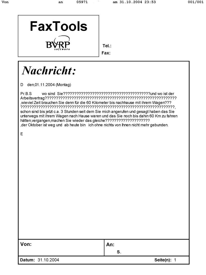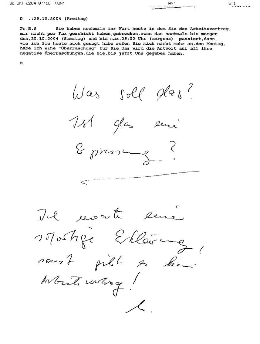 Dieses Faxschreiben, -(sehe unten BLATT NR.: 100.-001, 002,003), hat der, - Pr. S. B.