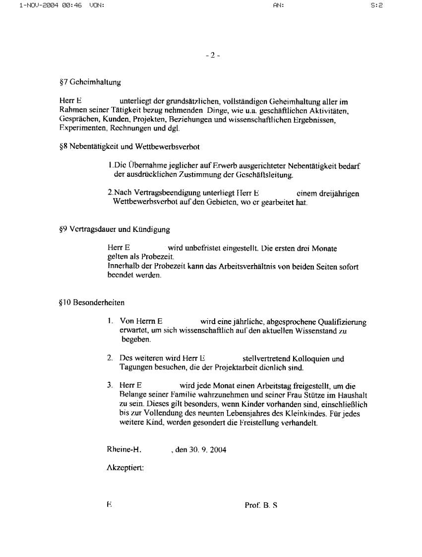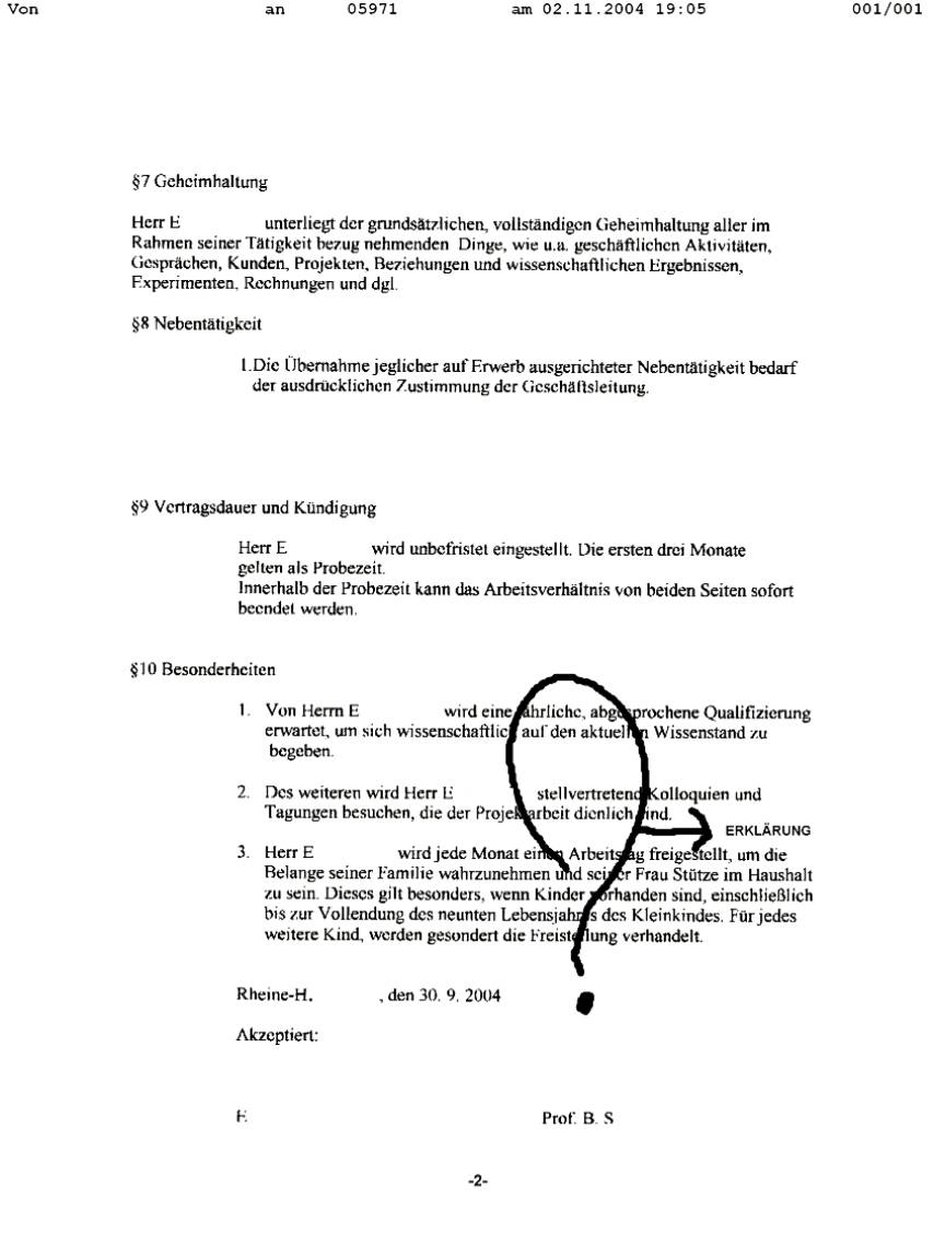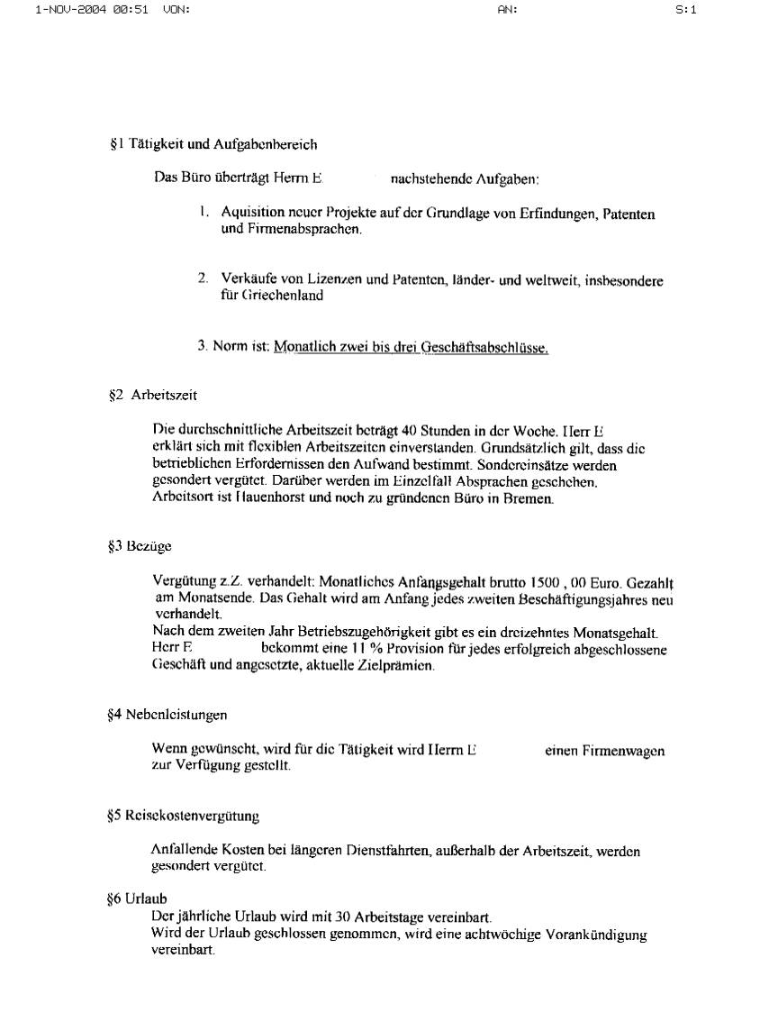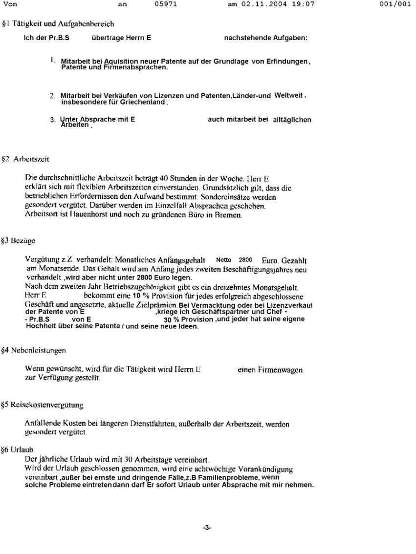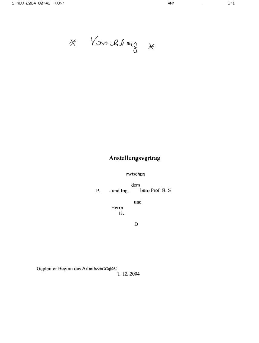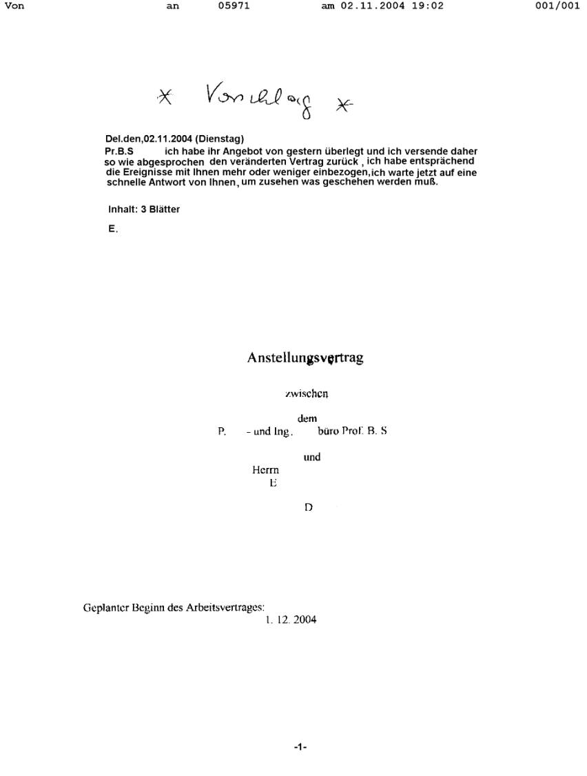 (ich hatte den von mir geänderten Vertrag per Fax zu Pr. B. S. geschickt), sagte